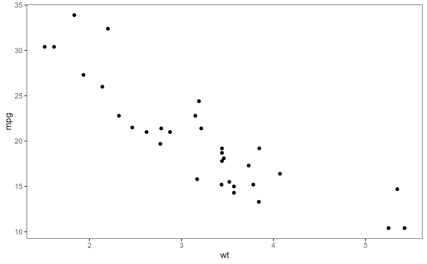 ggplot(mtcars, aes(x = wt, y = mpg)) +